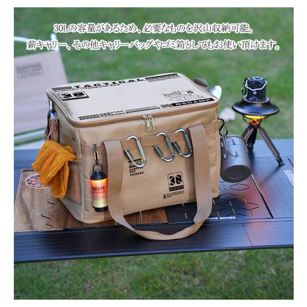 30Lの容量があるため、必要なものを沢山収納可能。薪キャリー、その他キャリーバッグやゴミ箱としてもお使い頂けます。