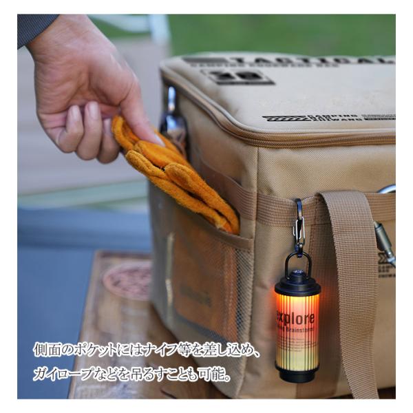 側面のポケットにはナイフ等を差し込め、ガイロープなどを吊るすことも可能。