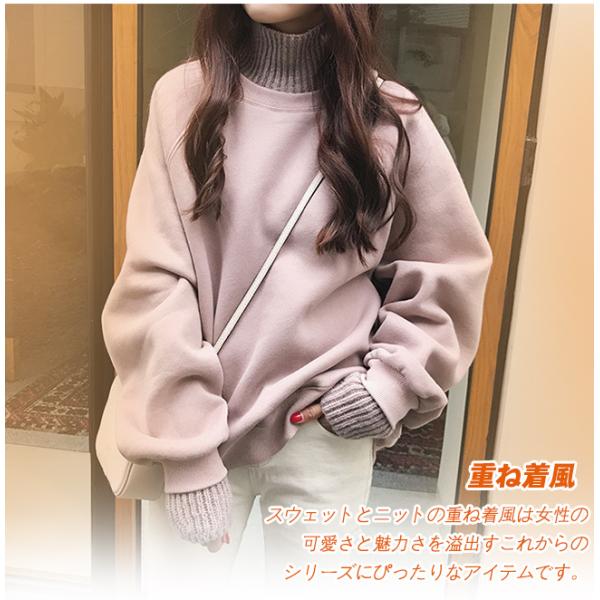 【2点30%OFF】裏起毛 透け感 カットソー 2type レディース tシャツ 重ね着 タートルネック 秋冬 インナートップ ニット あったか 長袖 爆買
