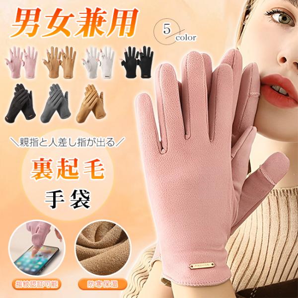 【2点目半額】手袋 指穴グローブ 指出し 裏起毛 スマホ対応 レディース メンズ 親指と人差し指が出る 5本指 指紋認証 防寒 保温 秋 冬 爆買