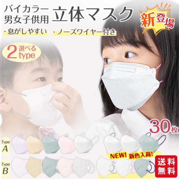 【2点10%OFF】新色バイカラー マスク 子供 30枚 立体マスク 不織布マスク 息がしやすい キッズ 子ども くすみカラー 3D立体 パステルカラー 花粉対策 爆買