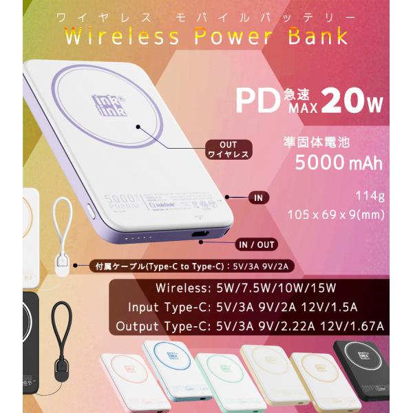 正規品 通常のリチウムイオンより安全な準固体電池 モバイルバッテリー 大容量 ワイヤレス 充電 iPhone 小型 軽量 ミニ タイプC ケーブル内臓 Android Type-C