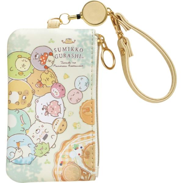 【2月中旬以降〜出荷】 すみっコぐらし リール付パスケース たぬきのまんまるレストラン 定期入れ ミニポーチ 小銭入れ コインパース