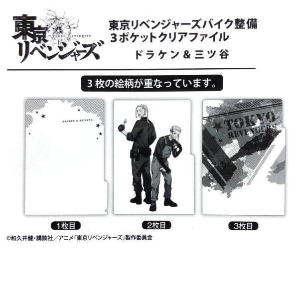 東京リベンジャーズグッズ バイク整備 つなぎ姿 3ポケットクリアファイル ドラケン&三ツ谷 アウトレット・ラッピング不可