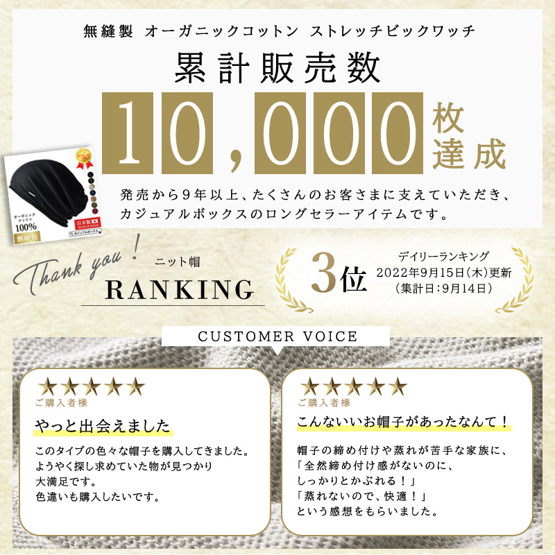 医療用帽子 ニット帽 ニットキャップ ビーニー 帽子 ケア帽子 おしゃれ メンズ レディース 秋冬 冬用 |オーガニックストレッチビックワッチ