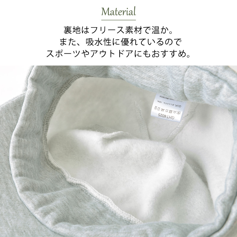 裏毛は厚みなく、吸水性に優れているのでスポーツやアウトドアにもおすすめ。