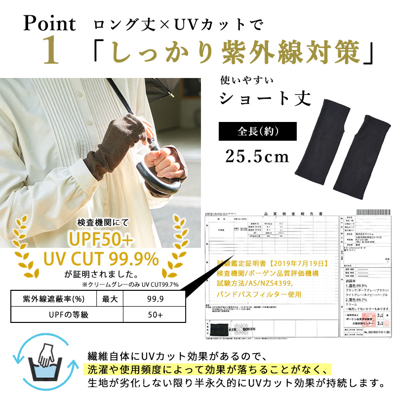 UPF50+ 手の甲 スマホ対応 日除け 冷えとり 短い 短め 無地 女性