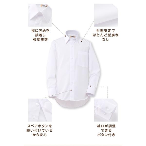 男子用 長袖スクールシャツ Yシャツ ワイシャツ カッターシャツ 白 無地 150cm 155cm 160cm 165cm 170cm 175cm 180cm 185cm 小学生 中学生 高校生 スクール 制服 通学 フォーマル 入学 卒業