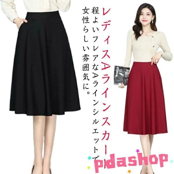 春 ウェストゴム 膝丈 ストレッチ ポケットあり スカート レディース オフィスカジュアル フォーマル OL オフィス ビジネス 通勤 Aライン 洗