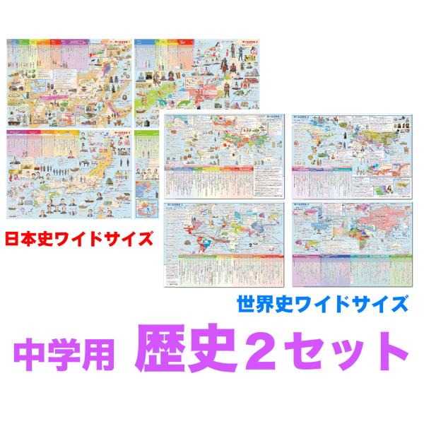 「学べる日本史 ワイド」「学べる世界史 ワイド」計8枚セット【ポスターケース発送】 お風呂ポスター 中学〜高校生向け歴史ポスター