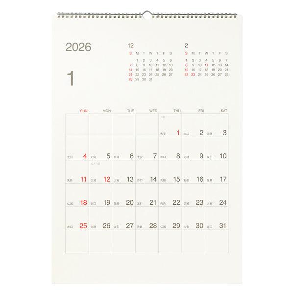 SALE 無印良品 バガス入りペーパー日曜始まり六輝カレンダー 2026年1月〜12月 A3 約420×297mm 良品計画