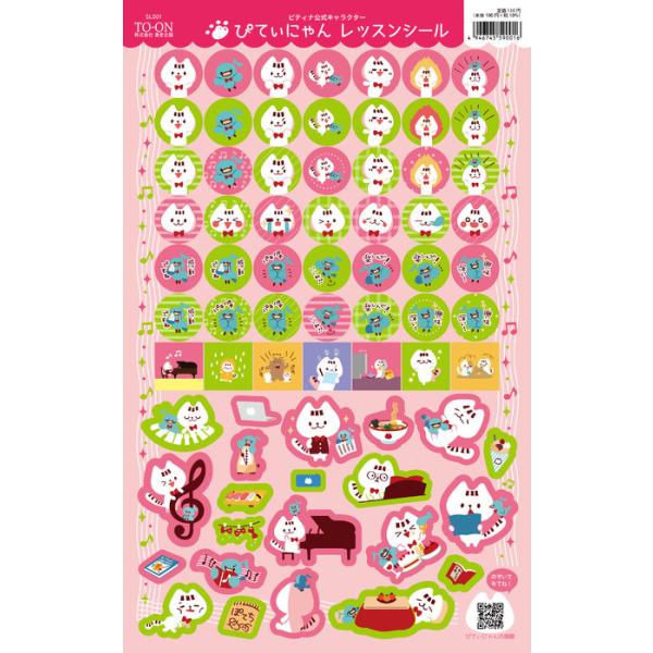 ぴてぃにゃん レッスンシール(音符ピンク)(SL001/1セット10枚入り/156mm×250mm)