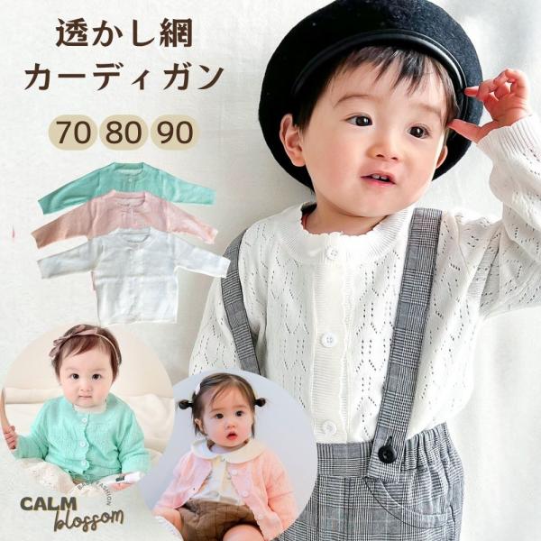 ベビー カーディガン ベビー服 赤ちゃん 春 夏 秋 透かし網 ニット 白 ピンク ミント グリーン 70 80 90 プレゼント 出産祝い
