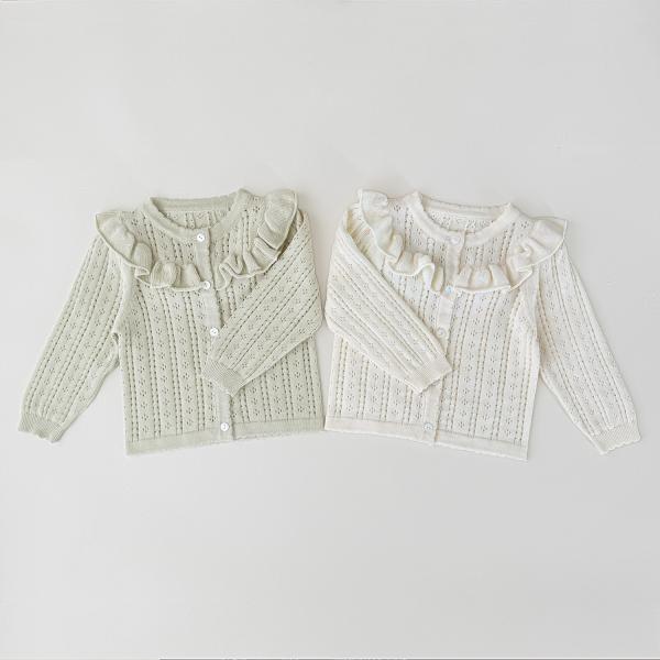 ベビー服 襟付きフリル 透かしニットカーディガン 長袖 ケーブル編み 丸首 ニット ベビー 赤ちゃん 赤ちゃん服