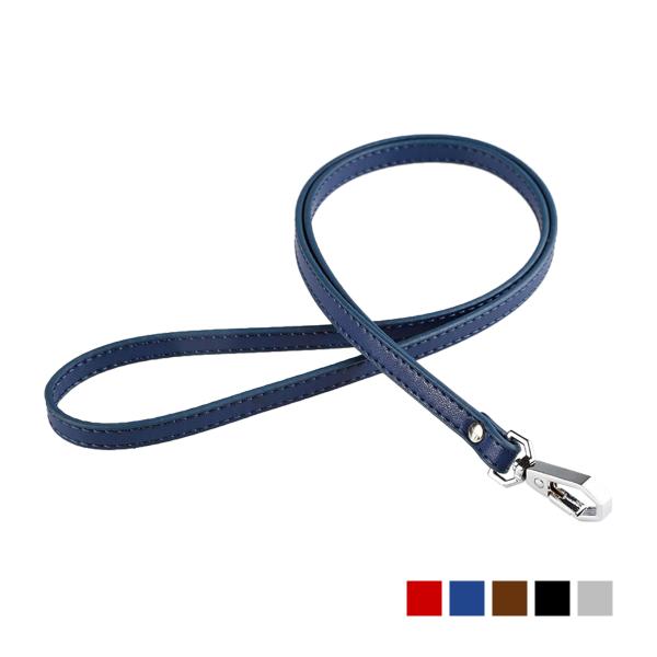リール付き ネックストラップ 本牛革 レザーネックストラップ 52cm ブラック / レッド / ブルー / グレー / ブラウン / ピンク