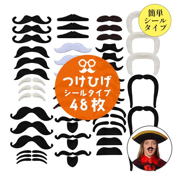 つけひげ 48枚セット シール 16種 1セット ハロウィン パーティー 仮装 コスプレ ネタ SNS映え つけ髭 写真 子供 赤ちゃん ペット レト