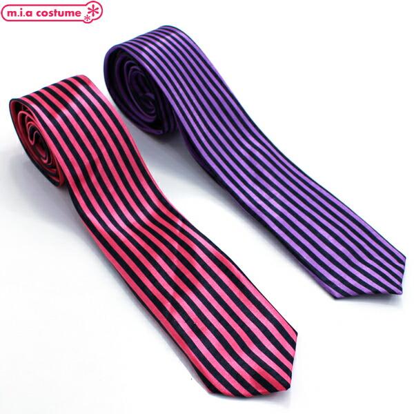 1281H■【送料無料・即納】B品 ネクタイ 細身縦ストライプ 色:黒×紫/黒×ピンク 縦縞 しましま スクール カジュアル オシャレ ハロウィン コスプレ