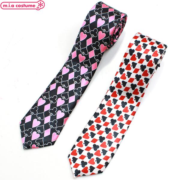 1307G■【送料無料・即納】B品 ネクタイ 細身トランプ柄 色:黒/白 不思議の国のアリス 赤 お揃い バンド スクール カジュアル オシャレ ハロウィン コスプレ
