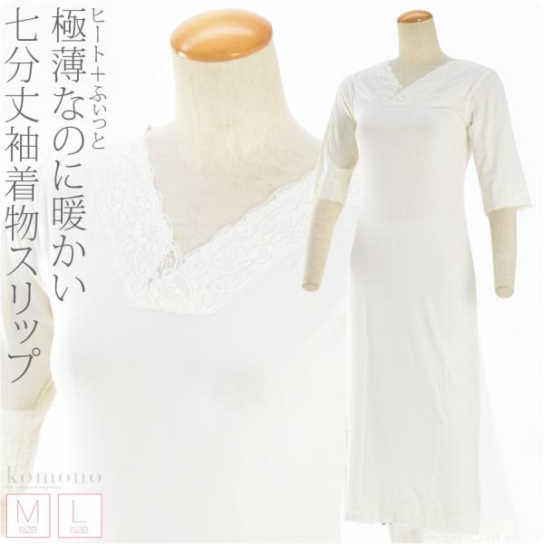 ワンピース 肌襦袢 防寒 冬用 ヒート+ふぃっと 着物スリップ 七分丈袖 裾レース 和装 下着 肌着 着物 インナー レディース
