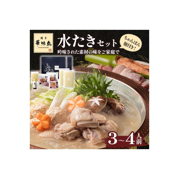 博多華味鳥 水たきセット(3〜4人前) 鍋 鳥 鶏肉 つみれ つくね ぽん酢 ちゃんぽん麺 華味鳥 九州 博多 惣菜 お中元 御歳暮ギフト