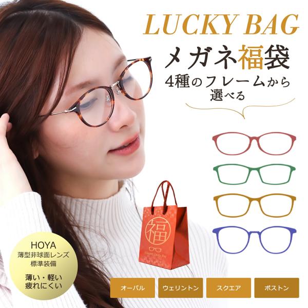 \形が選べる HOYA薄型非球面レンズ付/ メガネ福袋 メガネ 度付き 度付きメガネ メガネフレーム 度付きレンズ付き 眼鏡 レディース メンズ 度入り