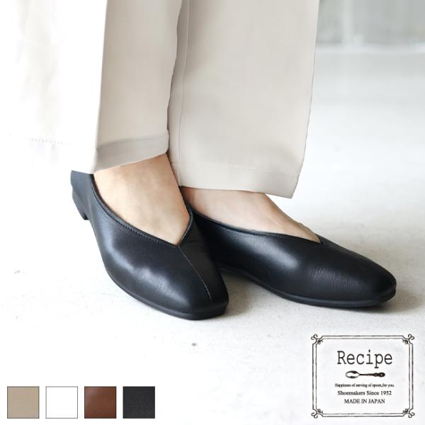 Recipe パンプス レディース 本革 レシピ フラットシューズ スクエア ローヒール ぺたんこ 歩きやすい 疲れにくい 柔らかい 日本製[FOO-MD-RP267]