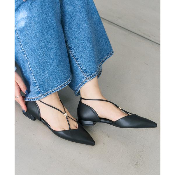 シューズ 「追加」ポインテッドメタルクロスストラップフラット レディース