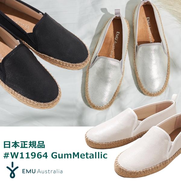 レディース エミュ EMU シューズ Gum Metallic W11964: 正規品/女性用/エスパドリュー/フラットシューズ/メタリック/エミュー/スリッポン/母の日/cat-fs