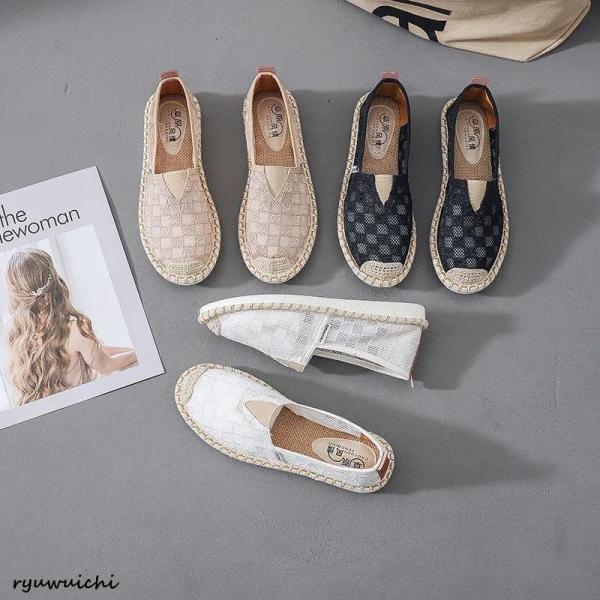 エスパドリーユ スリッポン レディース ぺたんこ靴 ローファー 夏 サンダル フラットシューズ 透かし編み レース 花柄 オシャレ 女性 靴 涼しい お中元