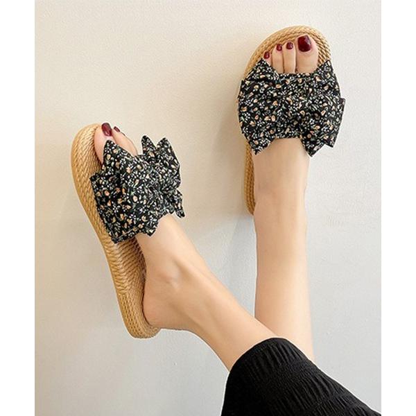 サンダル 花柄 リボン エスパドリーユ風 フラット サンダル レディース