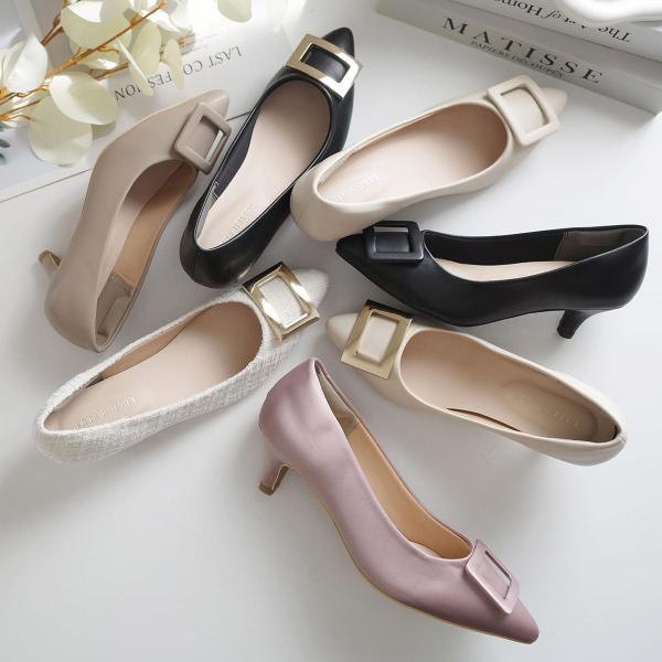 パンプス かかと滑り止めジェル付き&スリッパにもなる2Way!幅がゴムで伸縮するフィットパンプス