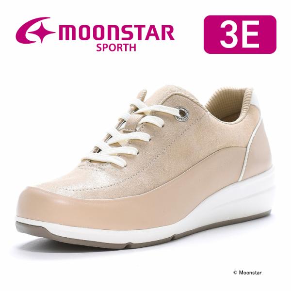ムーンスター スポルス スニーカー 日本製 幅広 甲高 撥水 本革 革靴 軽量 コンフォート シューズ 普段履き 靴 母の日 moonstar SPORTH SP0215 ピンクベージュ