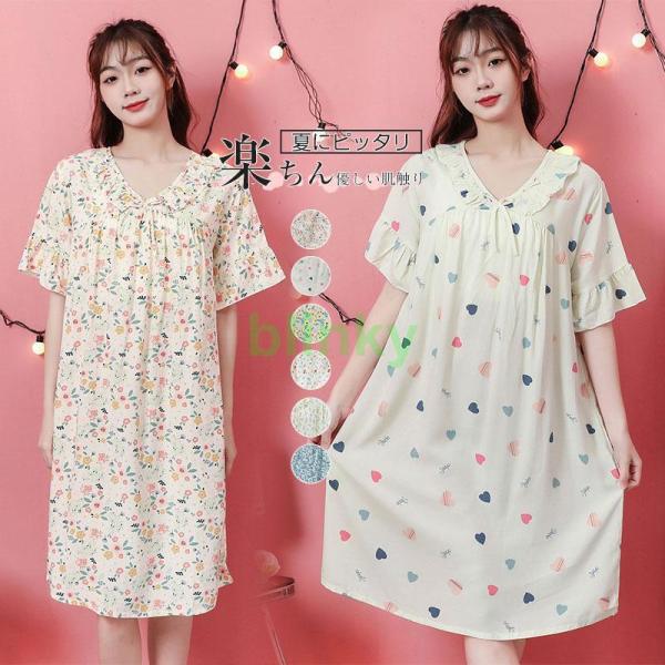パジャマ ワンピース ネグリジェ 半袖 綿100% 前開き レディース ロング丈 夏 ネコポケット マタニティ 入院 準備 産後 ルームウェア 可愛い v1-79601all $$