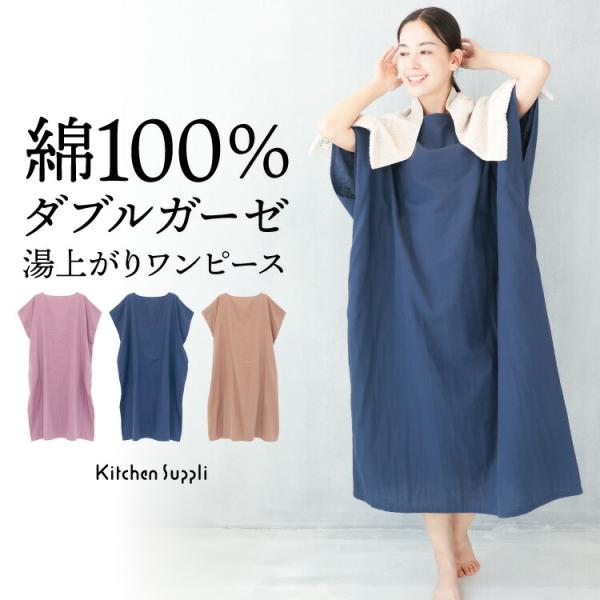 湯上がりガーゼワンピース ネグリジェ パジャマ ガーゼ お風呂上がり ルームウェア レディース 綿100% ダブルガーゼ ガウン サウナ 湯浴み着 ジム x9-wgo021