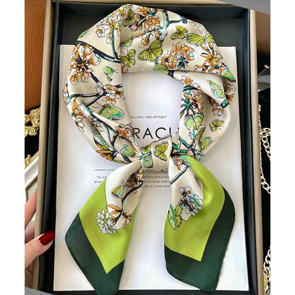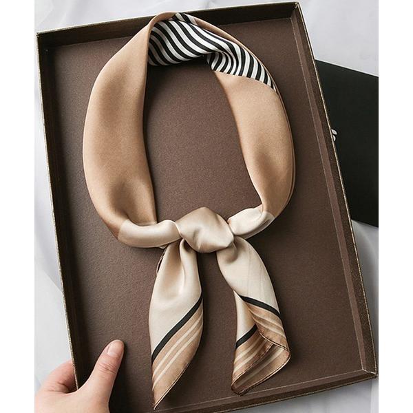 シルク100% 高級サテンスカーフ 52×52cm 正方形 小さめ バンダナサイズ ホワイトデー プチギフト