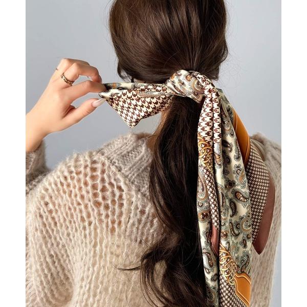 スカーフ バンダナ シルク風スカーフ 首巻き 配色バンダナ レディース