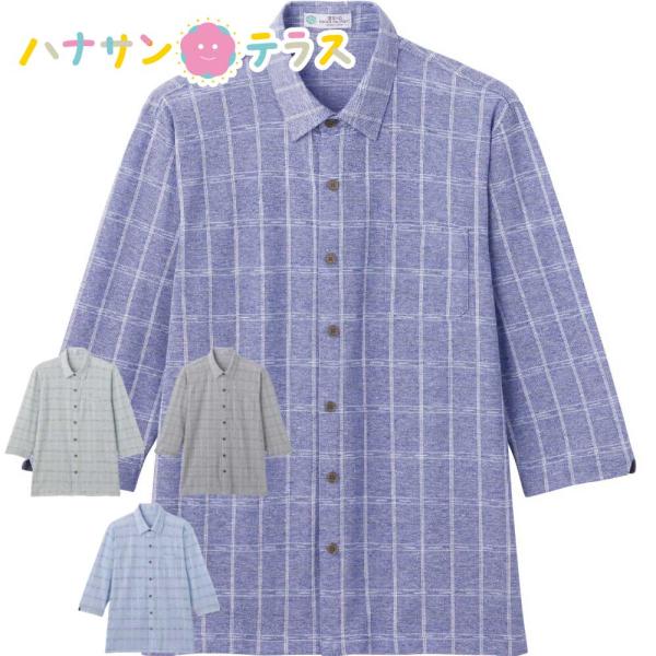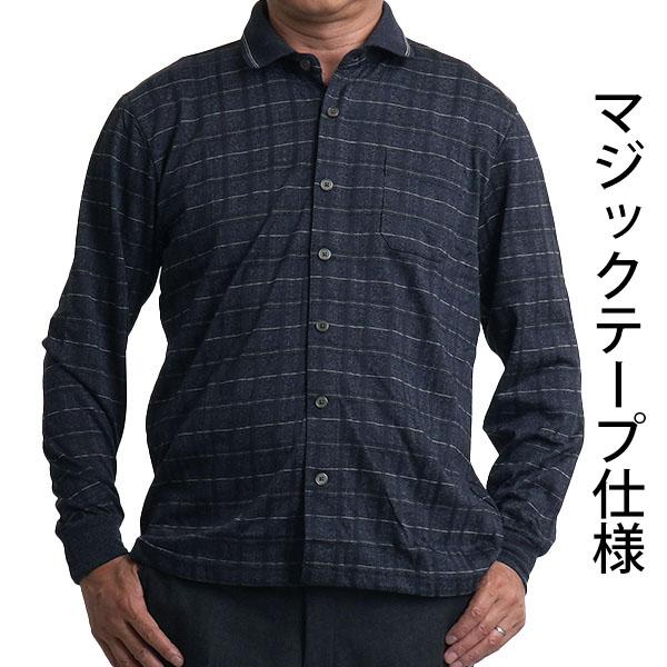 介護服 マジックテープ 前開き シャツ 男性 メンズ 長袖 シニア 紳士服 50代 60代 70代 80代 通院 ストレッチ ゆったり 健康の森 秋冬 春 1002