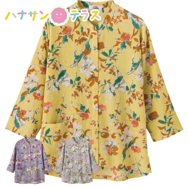 7分袖スナップ釦前開きTシャツ M~L フリーサイズ S LL 3L 後ろ身頃長め レディース 婦人 用