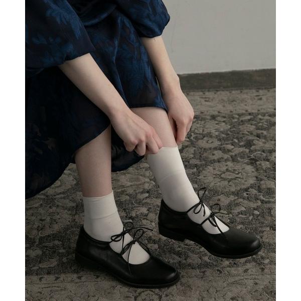 バレエシューズ パンプス 「BONLECILL noir」ダブルリボンストラップバレエシューズ/ギリーシューズ