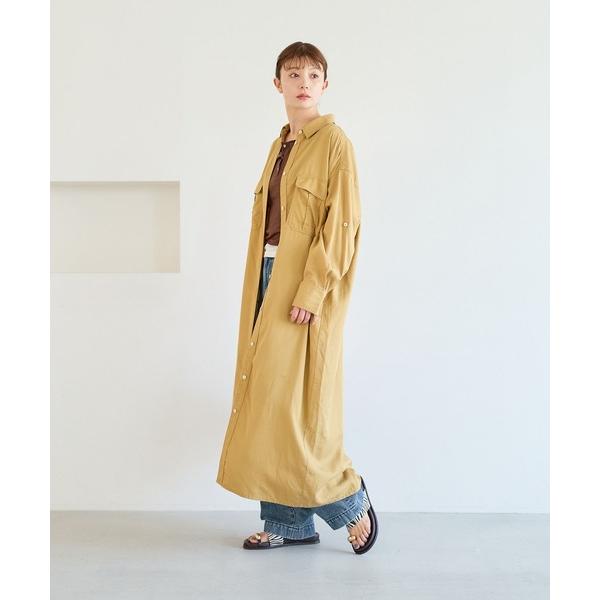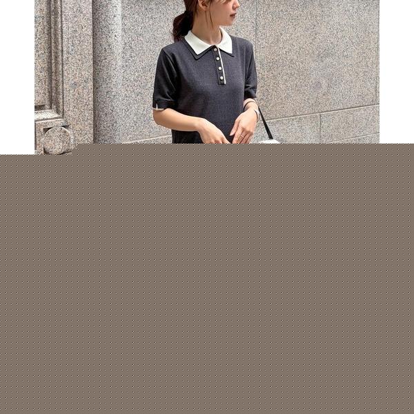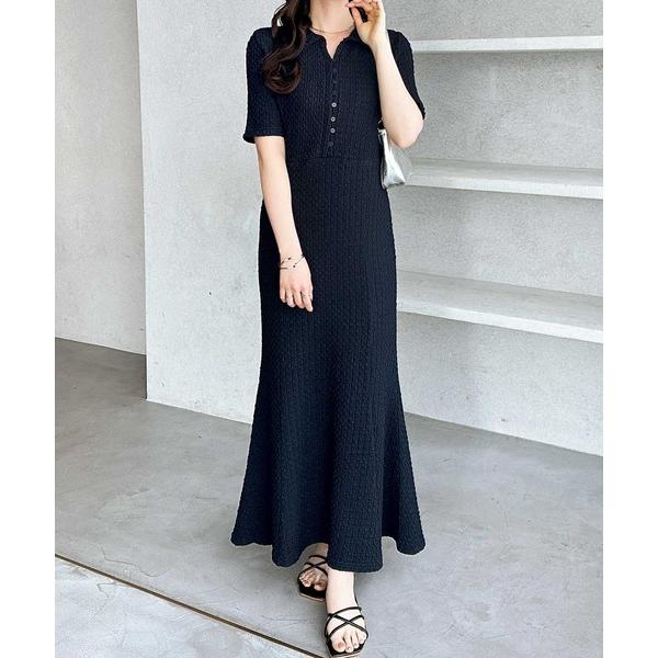 ワンピース 全骨格細見え!表面感素材ポロ襟マーメイドワンピース