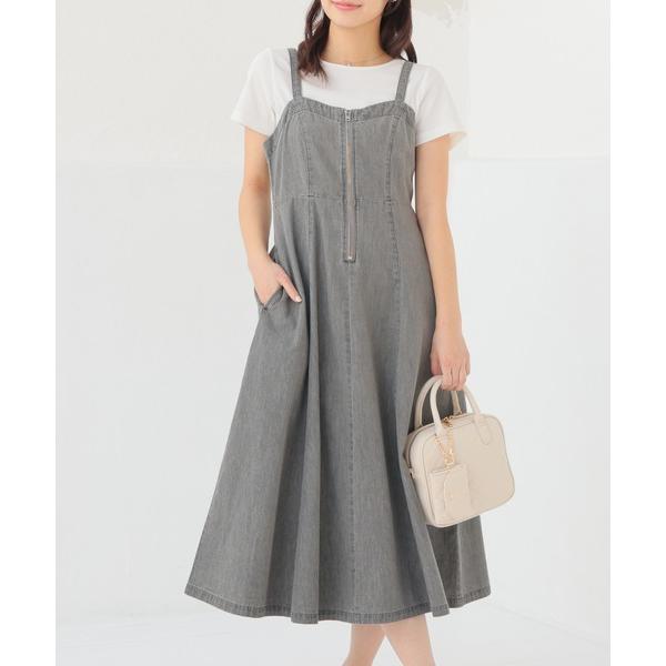 ワンピース 春のおでかけにちょうどいい♪チェック柄ダブルストラップバックリボンキャミワンピ(ロング丈)