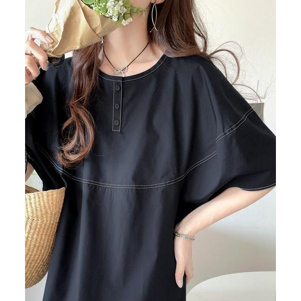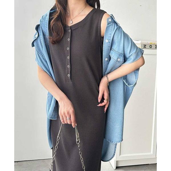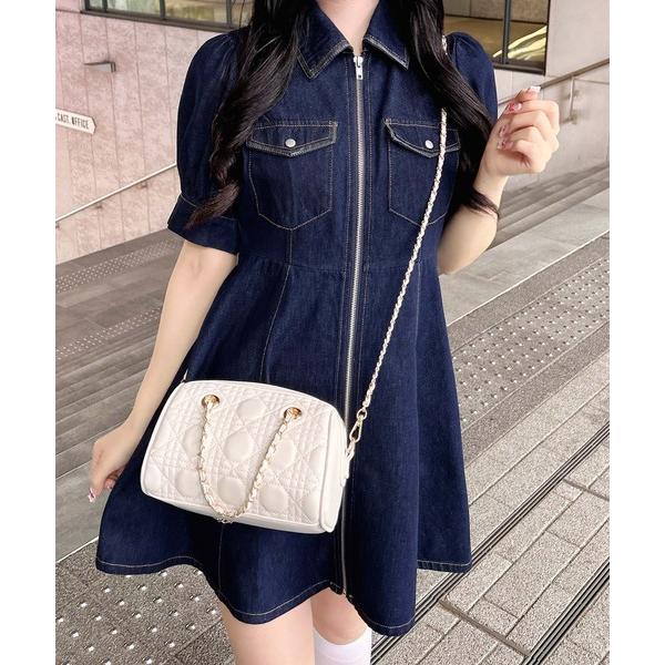 ワンピース 合皮切替デニムミニワンピース