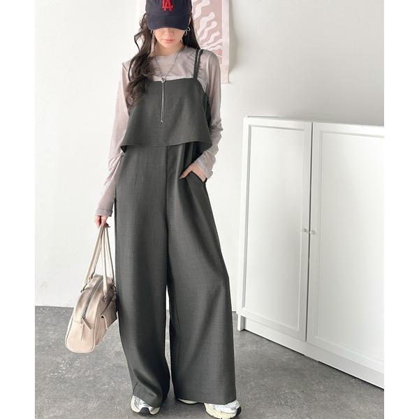 サロペット オーバーオール 毎日のコーディネートに華を添える。リネンライクフリルビスチェサロペット レディース