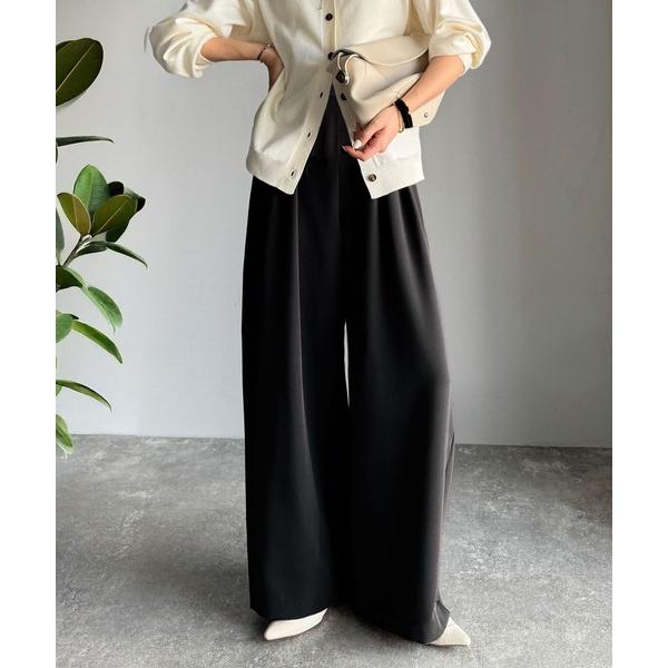 スラックス パンツ 入学式 入園式 美脚魅せ、センタープレス。オールシーズン大活躍のタックワイドイージーパンツ レディース