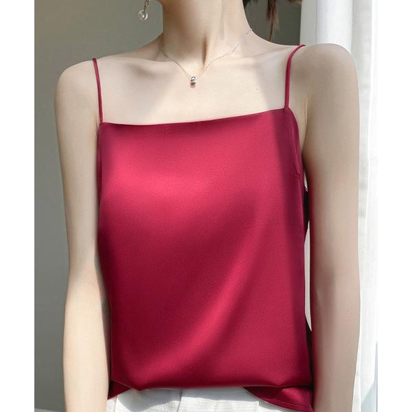 キャミソール 「2枚重ね生地で透けにくい」シルキーサテンキャミソール レディース