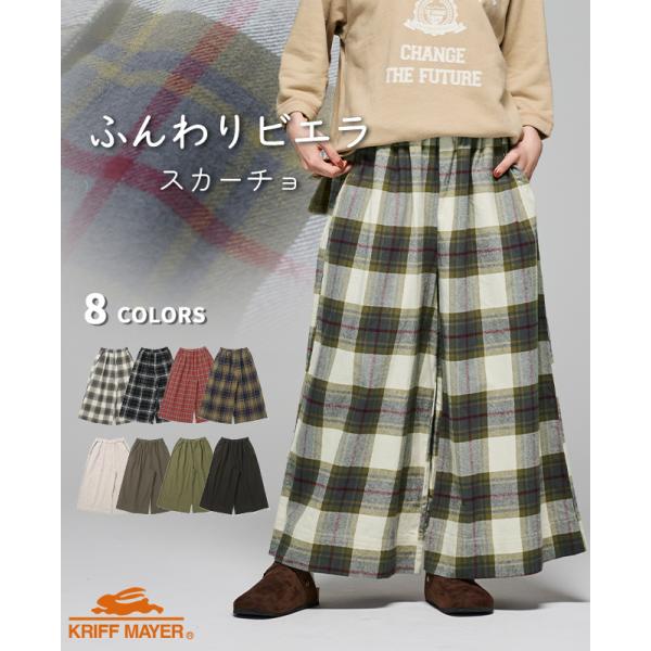 クリフメイヤー レディース KRIFF MAYER LADYS ボトムス パンツ ズボン フレア 微起毛 綿100 コットン チェック 無地 春 秋 冬 2025FW ビエラ スカーチョ