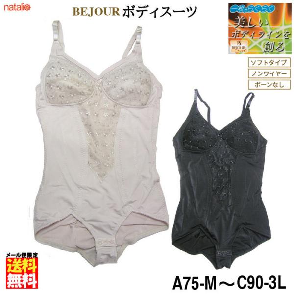 ベジュール(BEJOUR) ボディスーツ ノンワイヤー 補正下着 ヒップアップ お腹引き締め スナップボタン ストレッチ 着圧インナー ソフトタイプ