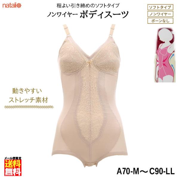 ソフトボディスーツ ノンワイヤー 補正下着 ヒップアップ お腹引き締め スナップボタン 1枚履き 着圧インナー ベージュ