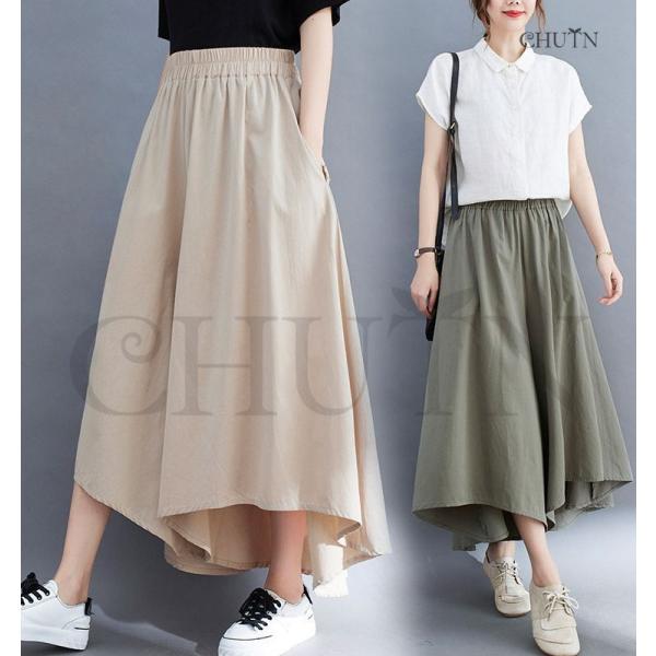 キュロットパンツ ハイウエスト ワイドパンツ夏 体型カバー ワイドパンツ 不規則裾 キュロット ロング 夏 サマーパンツ Aライン お出かけ/通勤/二次会