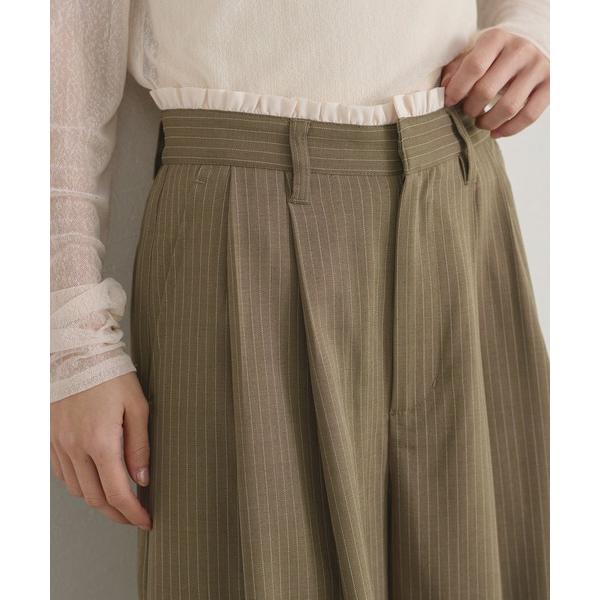 パンツ エンボス加工ウエストシャーリングワイドパンツ レディース